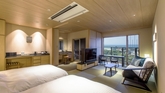 An exclusive adults-only retreat with just 18 rooms, perched on the hills of Yuhigaura Onsen. With only three rooms per floor, every guest room features a private terrace and a hot spring bath with a scenic view. On the top floor, guests can enjoy a graceful moment watching the ocean and the sunset from the dedicated "Lounge Terrace AO."