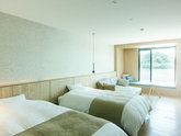 Opened in the spring of 2022. This room features three semi-double beds, offering a panoramic view of the beautiful lakeside location. With a full flooring layout, the space provides a clean and comfortable environment for families or groups.