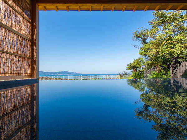 【Public Bath】"Infinity Open-air Bath" (Alternating for men and women) where you can blend into the sea and the sky. Clear blue skies.