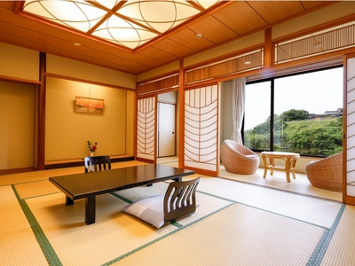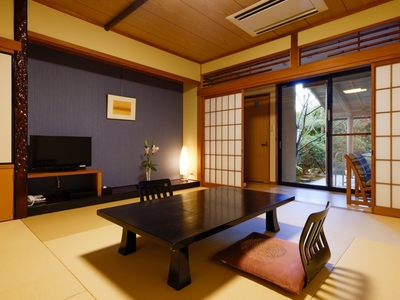 Located in the main building, this 8-tatami Japanese room features a private open-air bath with natural hot spring water.