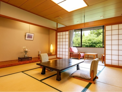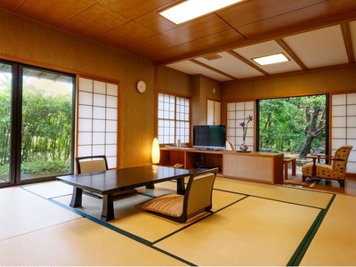 Located on the 2nd floor of the West Annex, this room features a 10-tatami Japanese room, a veranda (hiro-en), and a private open-air bath with natural hot spring water.