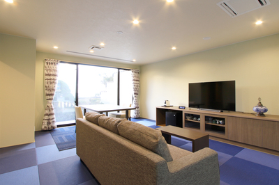 This spacious suite includes an 18-tatami living room, an 8-tatami bedroom, and two semi-double beds.