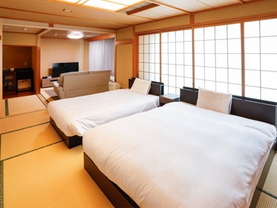 This expansive 89㎡ suite offers a spacious 49㎡ (29-tatami) living and bedroom area with twin beds.