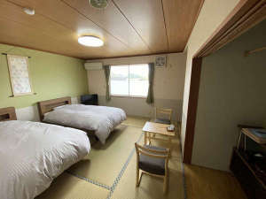 Japanese-Western Room (14 Tatami) / Capacity: 2–4 Guests [2 Single Beds] [No Private Bath or Toilet]